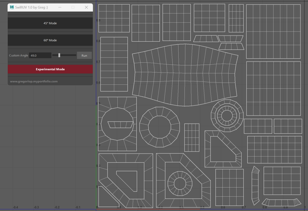 - Click on the SwiftUV shelf button to run the script. This will unfold your mesh and create seams every time a 45 degree edge (or greater) is found